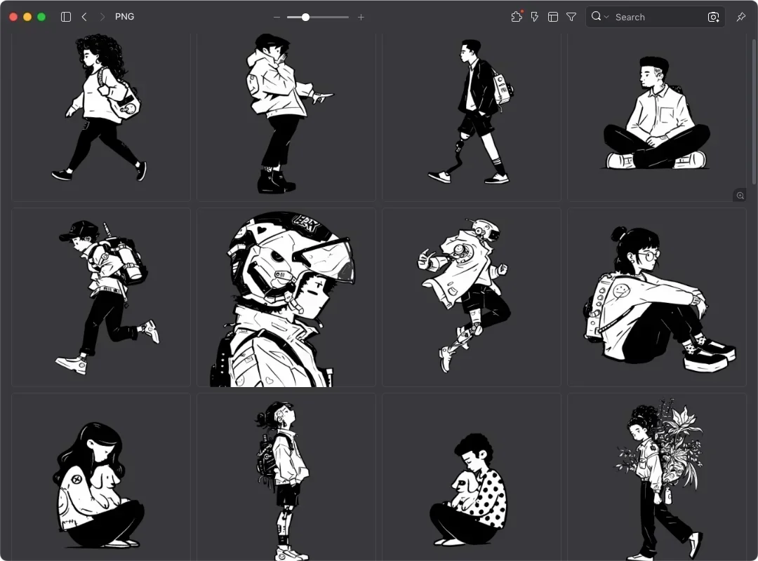 transhumans is an open-source illustration project centered around the theme of "Post-humanism." Unlike typical corporate styles, this collection features minimalist yet imaginative lines, including cyborg figures in various poses, tech accessories, and abstract digital elements.